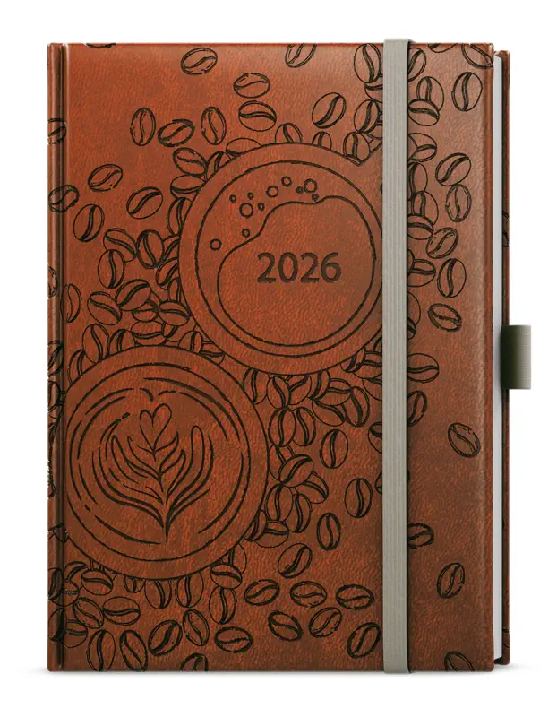 Denní diář v hnědé vivelle s krásnou celoražbou motivu Kávových zrn. Diář v B6 formátu s velkým prostorem pro poznámky a plánování.