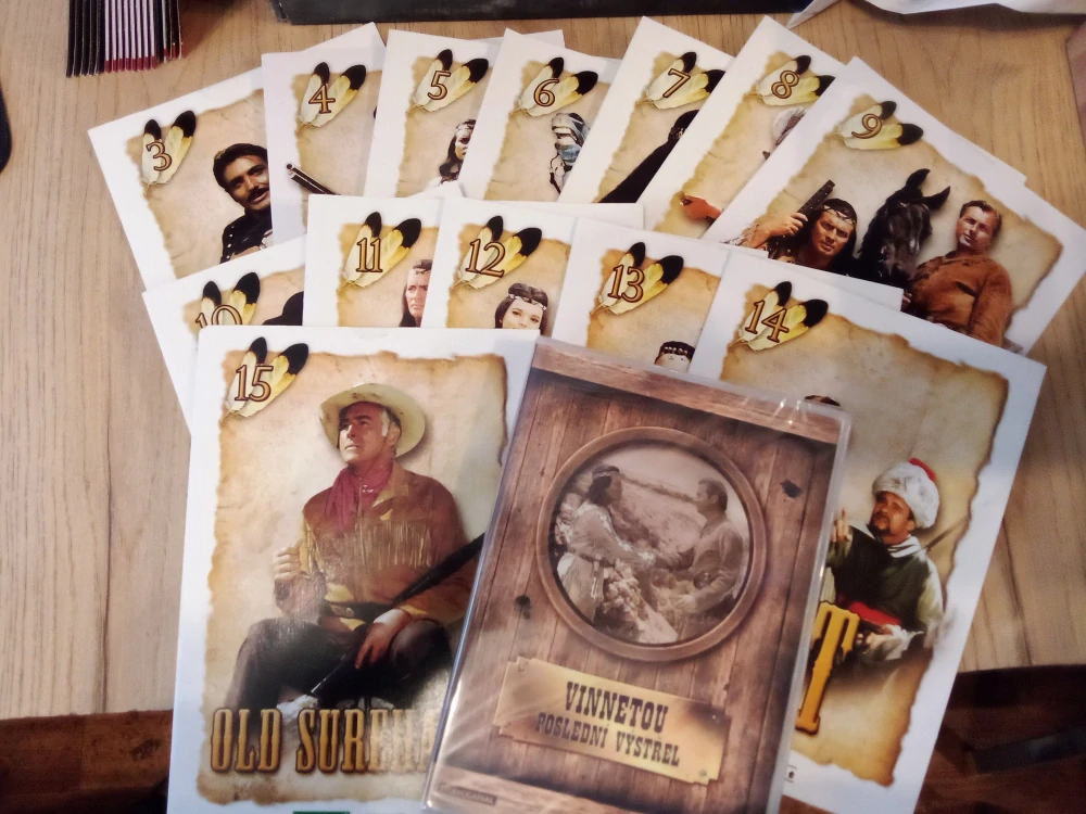 3. Pyramida boha slunce 4. Old Shatterhand 5. Mezi supy 6. Petrolejový princ 7. Vinnetou rudý gentleman 8. Divokým kurdistánem 9. Vinnetou a Old Shatterhand v údolí smrti 10. Poklad Aztéků 11. Old Firehand 12. Vinnetou a míšenka Apanači 13. V říši stříbrného lva 14. Žut 15. Old Surehand 16. Vinnetou poslední výstřel.